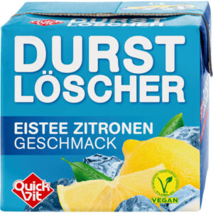 1,00 €QuickVit Durstlöscher Eistee Zitrone (500ml) – Ein erfrischender Eistee, der den kräftigen Geschmack von Schwarztee mit der spritzigen Frische der Zitrone kombiniert. Ideal für eine schnelle Erfrischung unterwegs oder an heißen Tagen. Am besten gut gekühlt genießen, um den vollen Geschmack der Zitrone zu erleben.