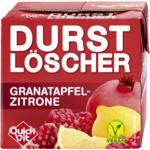 1,00 €QuickVit Durstlöscher Granatapfel-Zitrone (500ml) – Eine spritzige Kombination aus Granatapfel- und Zitronensaft, die für eine erfrischende Balance zwischen Süße und Säure sorgt. Ideal als schneller Durstlöscher an heißen Tagen oder für unterwegs. Am besten gut gekühlt genießen, um das volle Fruchtaroma zu erleben.