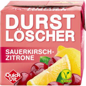 1,00 €QuickVit Durstlöscher Kirsch/Zitrone (500ml) – Ein fruchtiger Mix aus Kirsch- und Zitronensaft, der für eine erfrischende und ausgewogene Mischung aus Süße und Säure sorgt. Ideal für unterwegs oder an heißen Tagen. Am besten gut gekühlt genießen, um das volle Fruchtaroma zu erleben.