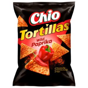 2,50 €Chio Tortillas Wild Paprika – Knusprige Tortilla-Chips mit dem würzigen Geschmack von wildem Paprika, ideal für einen veganen Snack-Moment.