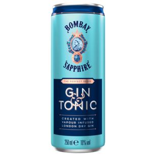 Bombay Sapphire Gin & Tonic 10% vol. (250ml) – Ein perfekt ausbalancierter Mix aus hochwertigem Bombay Sapphire Gin und prickelndem Tonic Water. Der klassische Gin & Tonic, mit seinen erfrischenden Zitrus- und Wacholdernoten, bietet in dieser Ready-to-Drink-Dose ein stilvolles und erfrischendes Geschmackserlebnis. Mit einem Alkoholgehalt von 10% Vol. ist dieser Drink ideal für entspannte Abende, Partys oder unterwegs. Gut gekühlt servieren und genießen!
