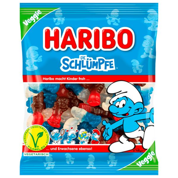 Haribo Die Schlümpfe Veggie bringt die bekannten und beliebten Schlümpfe in Form von Fruchtgummis in deine Naschpause. Diese köstlichen Fruchtgummis sind in den klassischen Farben Blau, Rot und Weiß gehalten und bieten den vollen Geschmack, den du von Haribo erwartest – jedoch in einer vegetarischen Variante ohne tierische Gelatine.