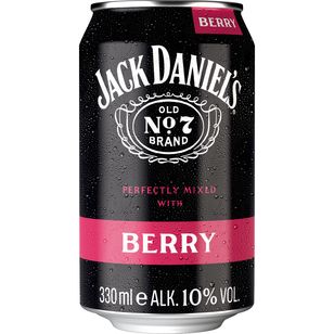 Jack Daniel’s & Berry 10% vol. (330ml) – Ein spannender Mix aus dem weltbekannten Jack Daniel’s Tennessee Whiskey und einer fruchtigen Beerenmischung. Dieser erfrischende Ready-to-Drink-Cocktail bietet mit einem Alkoholgehalt von 10% Vol. eine perfekte Balance zwischen der intensiven Whiskey-Note und dem süßen, spritzigen Beerengeschmack. Ideal für entspannte Abende oder unterwegs, serviert man diesen Drink am besten gut gekühlt für das volle Geschmackserlebnis.