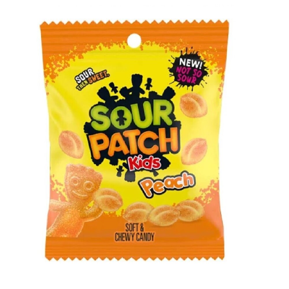 Sour Patch Kids Peach vereinen den unwiderstehlichen Geschmack von reifen Pfirsichen mit der typischen Sour Patch Süß-sauer-Kombination. Diese weichen und zähen Kaubonbons bieten ein erfrischendes Fruchterlebnis, das mit einer säuerlichen Note beginnt und in eine angenehme Süße übergeht. Perfekt für alle, die den fruchtigen Geschmack von Pfirsichen lieben und gleichzeitig den sauren Kick genießen wollen.